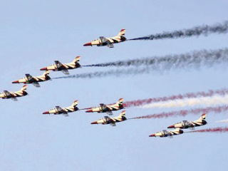 فى اجواء احتفالية، شاركت القوات الجوية بعروض جوية فى سماء القاهرة الكبرى اعتبارا من الساعة 11 من صباح امس والساعة الرابعة والنصف عصرا فى إطار احتفالات مصر والقوات المسلحة بالذكرى الرابعة والثلاثين لتحرير سيناء.