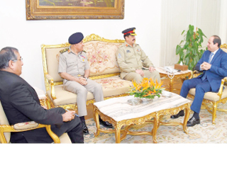 وقد طلب الرئيس نقل تحياته وتقديره للرئيس الباكستانى ورئيس الوزراء، منوهاً إلى أهمية تضافر الجهود الدولية لمكافحة الإرهاب من خلال استراتيجية شاملة، وأكد الرئيس اهتمام مصر بتطوير تعاونها مع باكستان والاستفادة من خبراتها العسكرية فى مجال مكافحة الإرهاب.