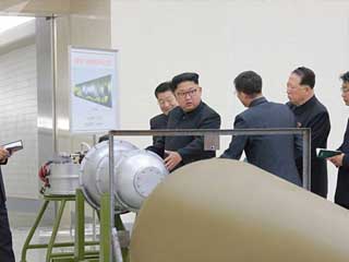 وتساءل: «هل تعتقدون أن كوريا الشمالية ستتراجع عن نهجها فى إنتاج أسلحة الدمار الشامل بسبب اتخاذ عقوبات ما ضدها؟».. فى المقابل، قال الرئيس الأمريكى دونالدترامب: إن كوريا الشمالية «دولة مارقة تمثل تهديدا كبيرا».. وأردف ترامب: إن «أقوال وأفعال بيونج يانج مازالت عدائية للغاية وخطيرة على الولايات المتحدة الأمريكية». بموازاة ذلك، أعلنت كوريا الشمالية عن تجربة ناجحة لرأس نووى حرارى يمكن تركيبه على صاروخ بالستى عابر للقارات.. ويرى خبراء عسكريون أن الرأس النووى الحرارى الذى أظهرت كوريا الشمالية نموذجه يمكن تركيبه على صاروخ «هواسونغ 12» وهو صاروخ يصل مداه إلى 4000 كيلومتر.. وأوضح الخبير العسكرى الروسى فيكتور موراخوفسكى أن المسافة الفاصلة بين كوريا الشمالية وجزيرة جوام الأمريكية تساوى 3200 كيلومتر فقط.. وأضاف: «أستطيع أن أقول إن الأسلحة الموجودة بحوزة الرئيس الكورى الشمالى كيم جونج أون مصوبة إلى الولايات المتحدة الأمريكية».