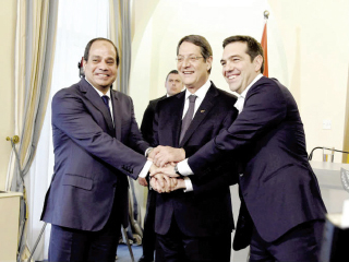 أرسى الرئيس عبد الفتاح السيسى قاعدة التعاون الثلاثى بين مصر واليونان وقبرص لحماية تأمين المصالح المصرية فى جنوب المتوسط خلال السنوات الثلاث الماضية، ومواجهة التحديات المشتركة وتحقيق التعاون المشترك فى مختلف المجالات.