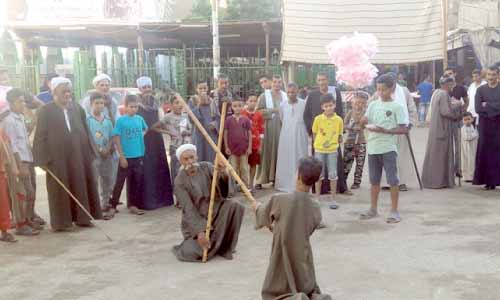 وخلال الاحتفال يتجمع العشرات من كبار السن والأطفال بمحيط ساحة ميدان الفرغل لممارسة «التحطيب» والتى تعد من العادات التى تتم خلال فترة الاحتفالات يوميا بعد صلاة العصر.