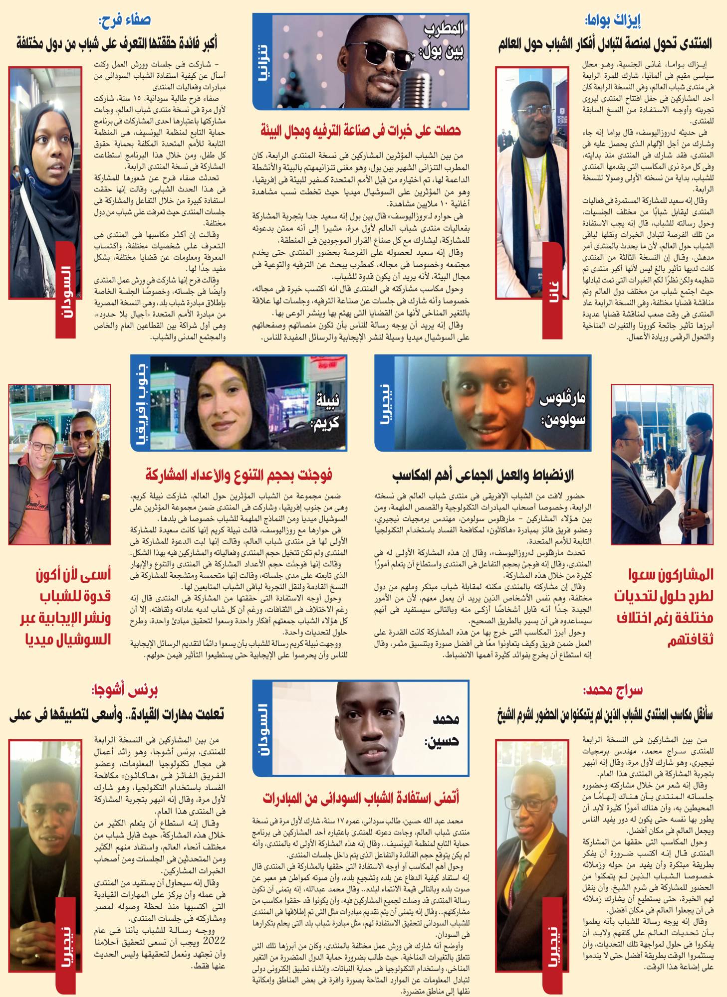 8 من الشباب الإفريقى يتحدثون عن مشاركتهم بمنتدى شباب العالم